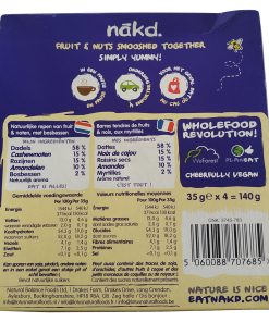 The pack of 4 Nakd Blueberry muffin bar is made from wholesome fruits that fill your day with positive energy and joy! It comes without any sugar to added flavors to make sure you stay healthy. The ingredients of this Nakd bar include dates, cashews, raisins, almonds, and blueberries.