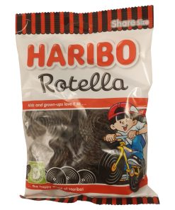Haribo is a German confectionery company founded by Hans Riegel Sr. It began in Kessenich, Bonn, North Rhine-Westphalia. The name “Haribo” is an acronym formed from Hans Riegel Bonn. The company created the first gummy candy in 1922 in the form of little gummy bears called Gummibärchen. HARIBO treats have brought joy to gummi fans for 100 years. With constant innovation in flavor combinations and new shapes, there’s something for everyone to enjoy. Haribo Rotella is a fun and tasty licorice wheels which you can eat in one bite or unroll and enjoy every inch along the way. This Black licorice candy has Delicious swirls. The famous yo-yo! Roll it out or eat it all at once, everyone eats the yo-yo in their own way. Haribo Rotella licorice wheels now !